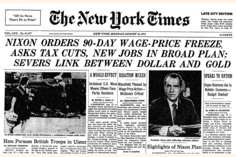 Les États se retirent du marché de l’or et essaient d’établir un marché parallèle entre banques centrales à prix fixe de 35$. Dès la réouverture du marché londonien, le prix libre grimpe immédiatement autour de 38$, puis 42$ l'once dans les mois qui suivent. La garantie de Bretton Woods n’existe plus ; les États-Unis ne sont plus capables de justifier leur masse monétaire et de l’imposer aux autres pays. En 1971, Nixon arrête totalement la convertibilité du dollar en or, impose une taxe de 10 % sur les importations et gèle les salaires et les prix durant 90 jours pour masquer l'inflation à la population.