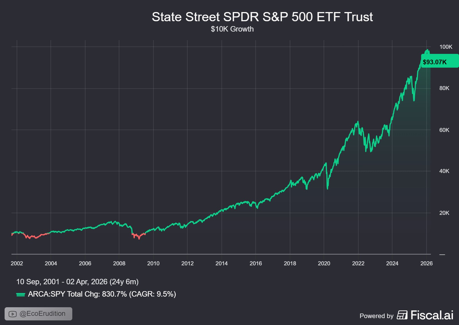 Ce sont deux écoles de pensée qui vont devenir la fondation des ETF, pour investir sans effort et avec le minimum de risque. Pour information, malgré l’ensemble des crises boursières connues depuis sa création en 1993 : the dot-com bubble (2000), les subprimes (2008), covid (2020), un investisseur ayant acheté un ETF SPY a vu sa valeur nominale multipliée par 14,6 et sa valeur réelle (ajustée à l’inflation) multipliée par 6,2. Une performance hautement impressionnante lorsque l’on sait qu’elle a été obtenue sans le moindre effort.