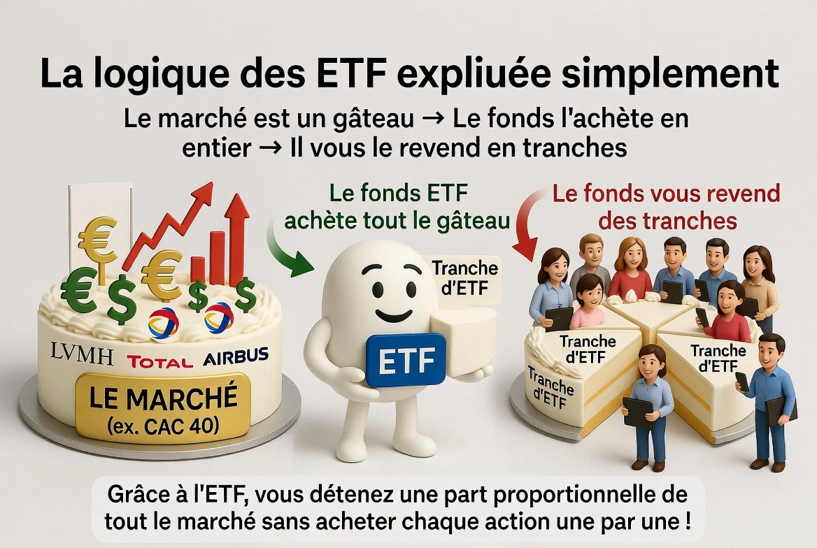 Un ETF est un véhicule d'investissement hybride, conçu pour allier les avantages de deux mondes jusqu'alors séparés : la mutualisation des risques propre aux fonds d'investissement (OPC) et la liquidité instantanée caractéristique des actions individuelles. Concrètement, un ETF est un fonds qui émet des parts négociables en bourse et dont l'objectif principal est de répliquer, le plus fidèlement possible, la performance d'un indice de référence (qu'il s'agisse d'actions, d'obligations, de matières premières ou de stratégies thématiques complexes).